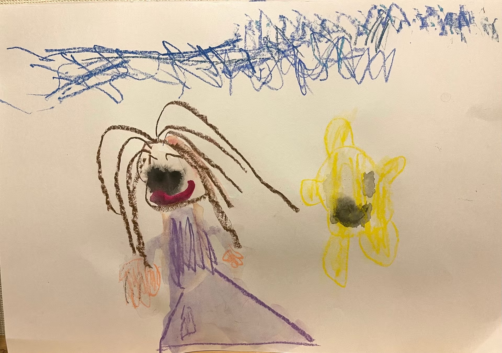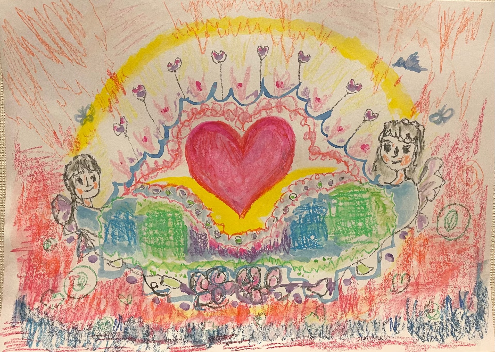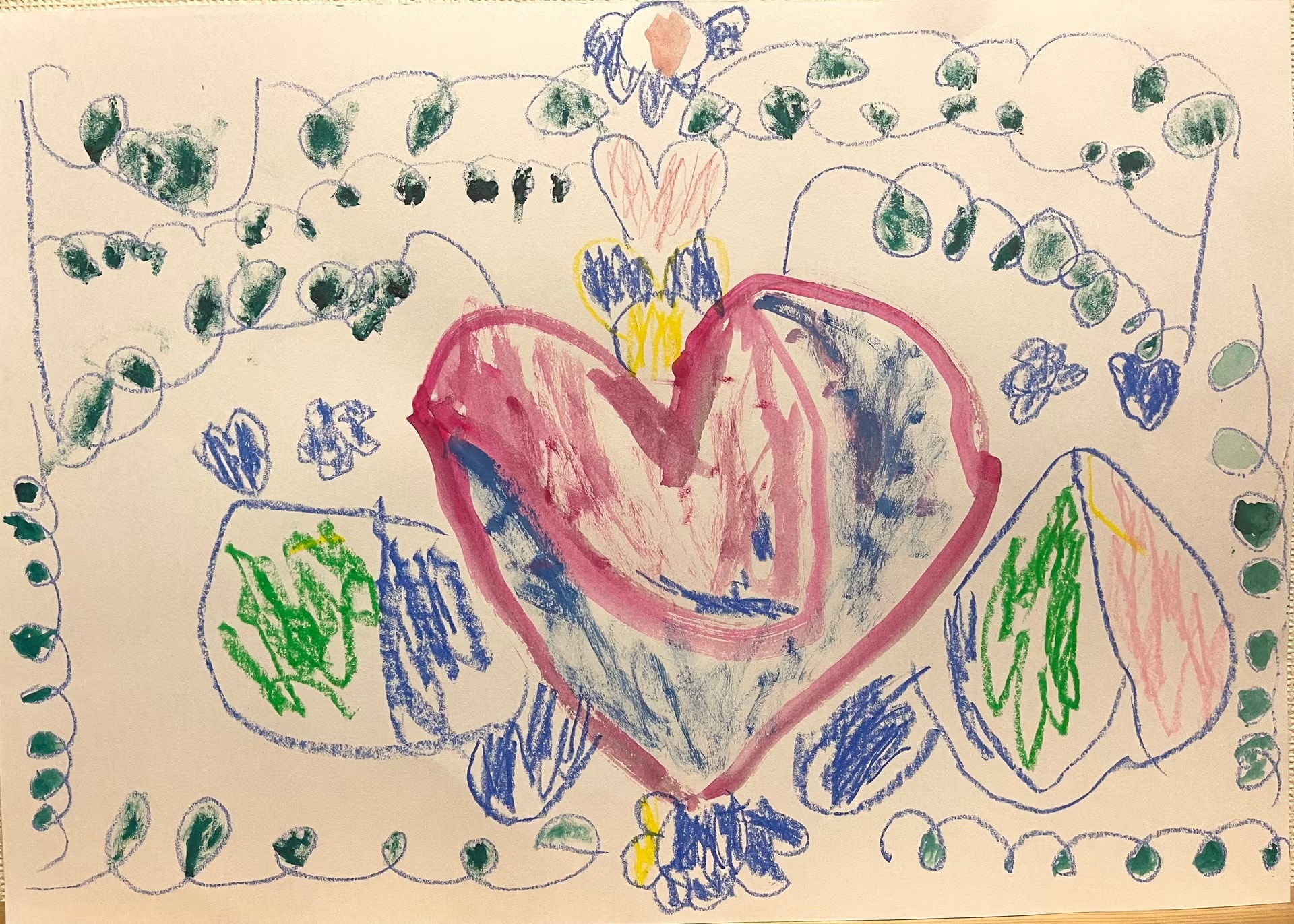 じぶんは「かわいいのこころをかく!」と言って描いていました。