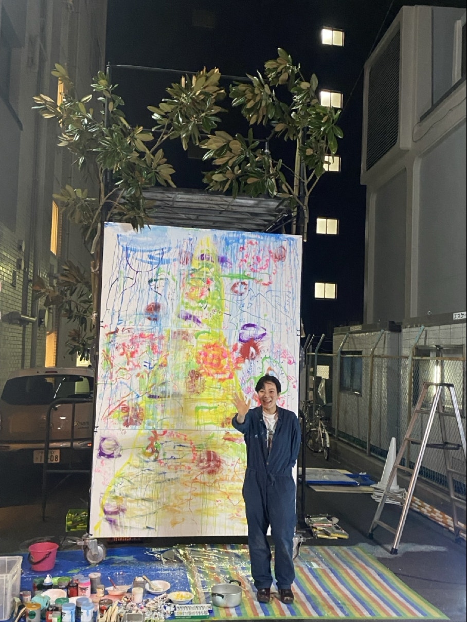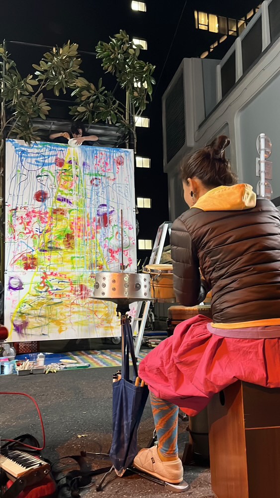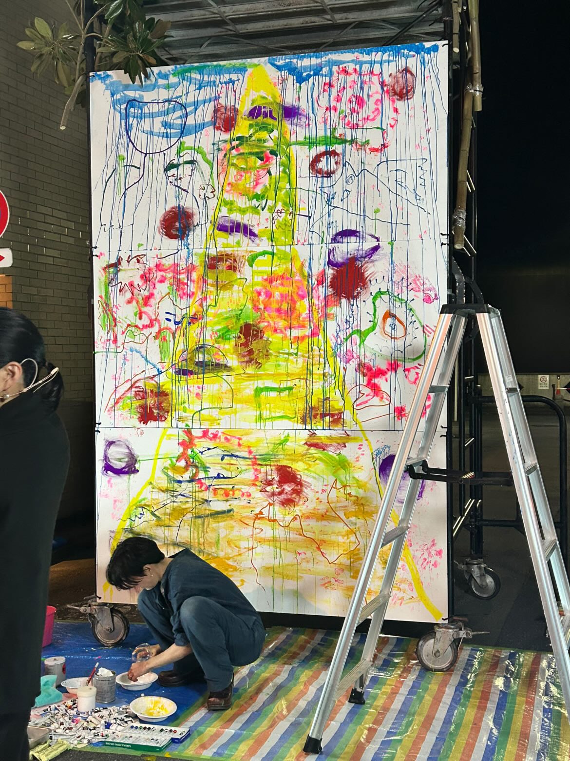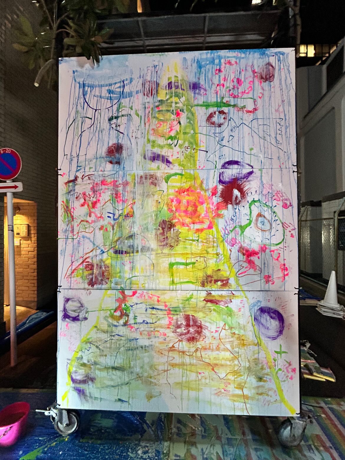 ライブペインティングの経験によって、私の絵を描く動きもよりダイナミックになったかもしれない。大きな絵を描くって、すごいことだ。