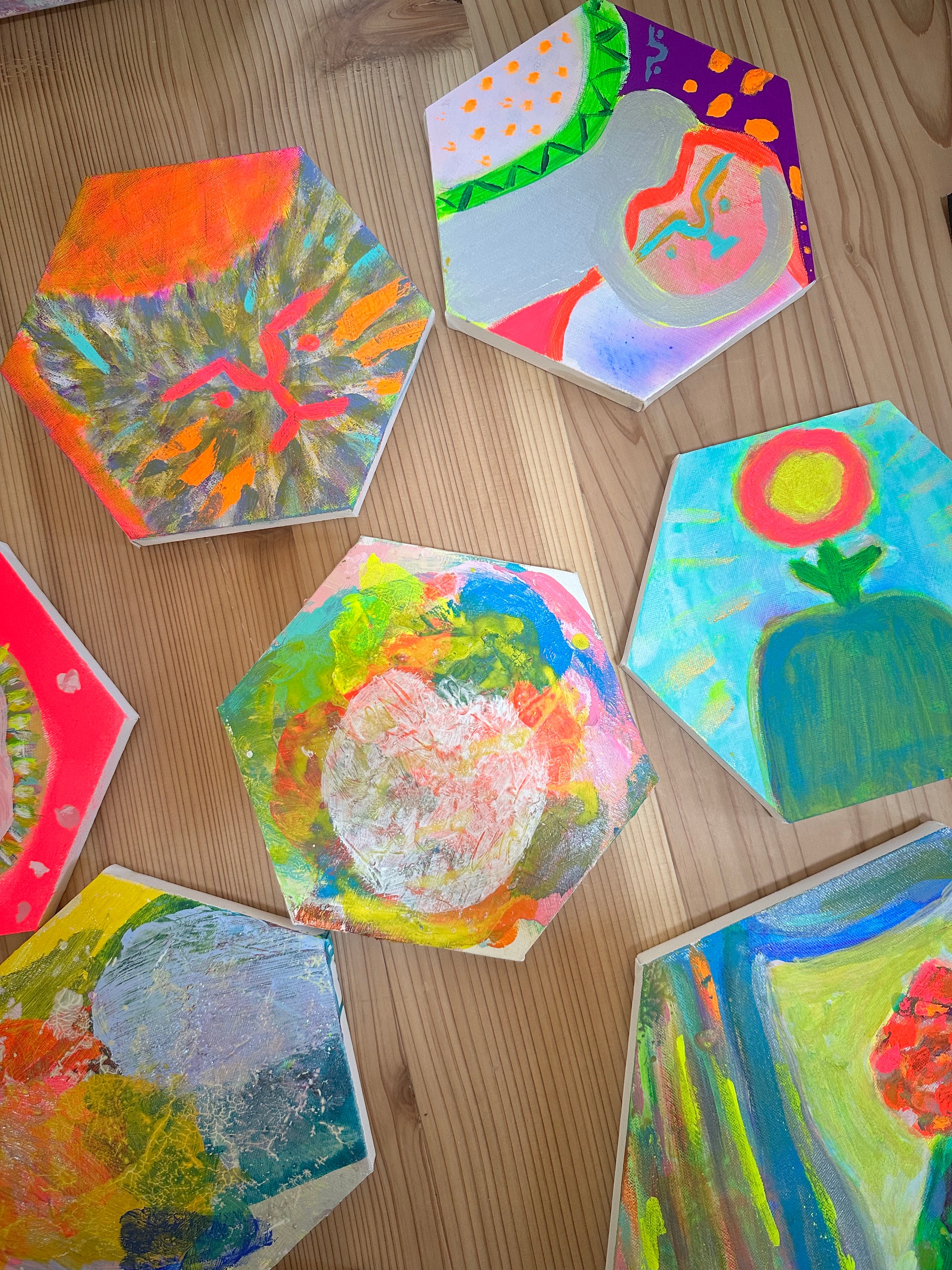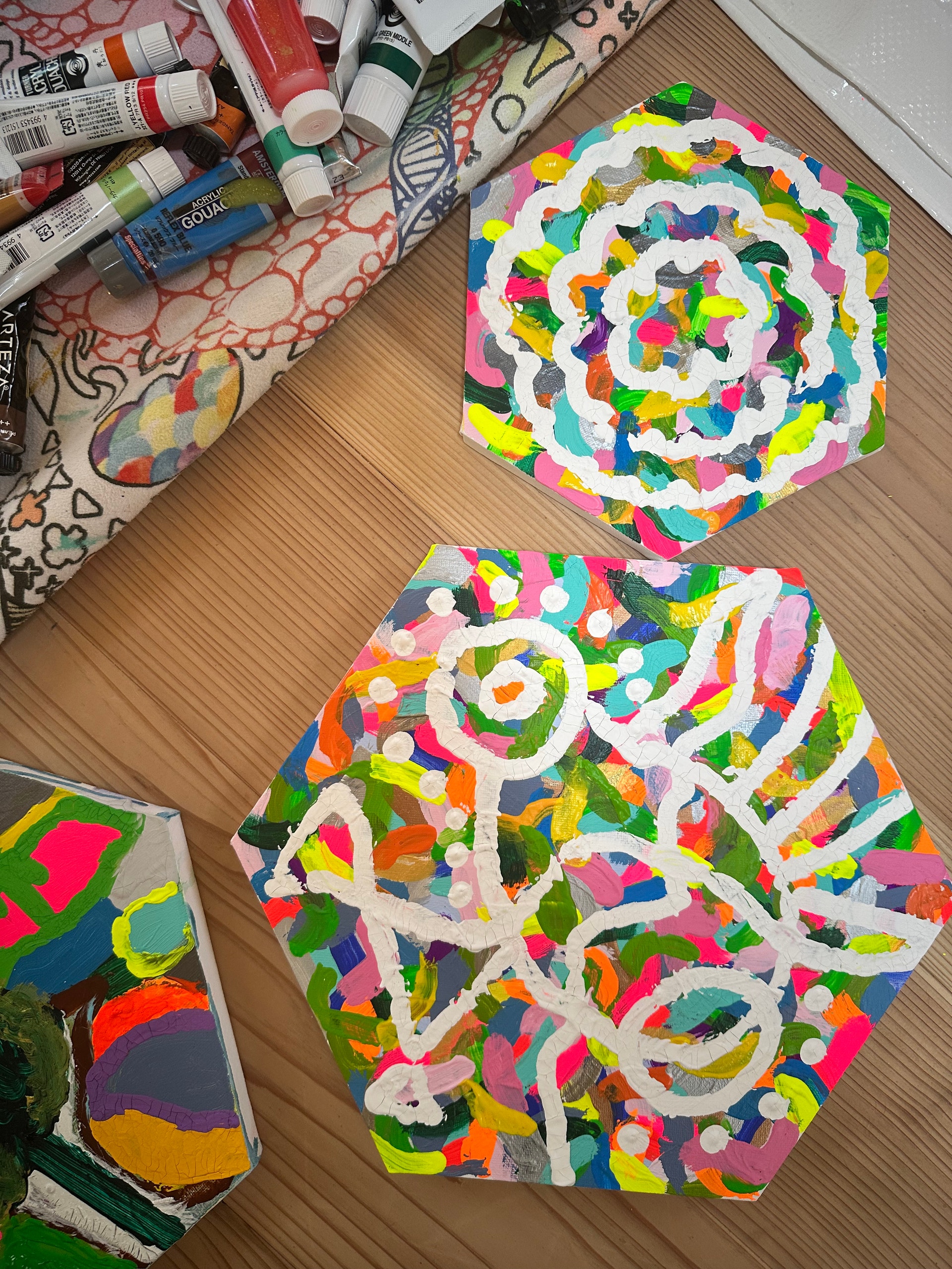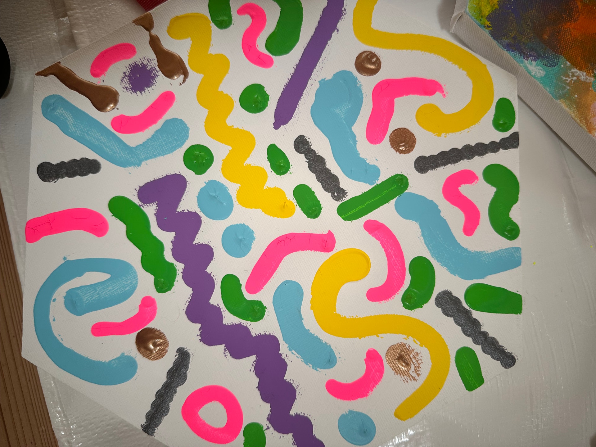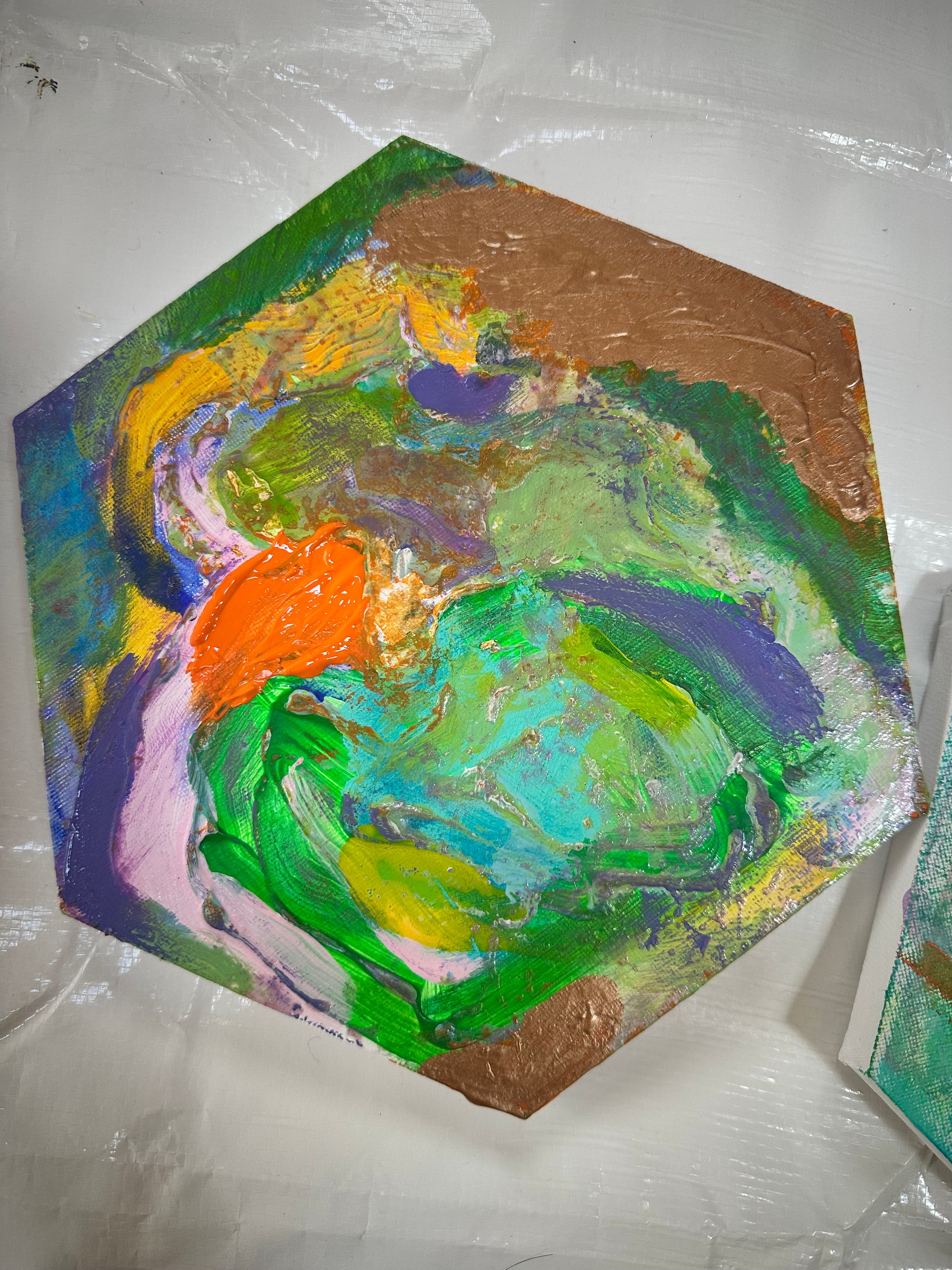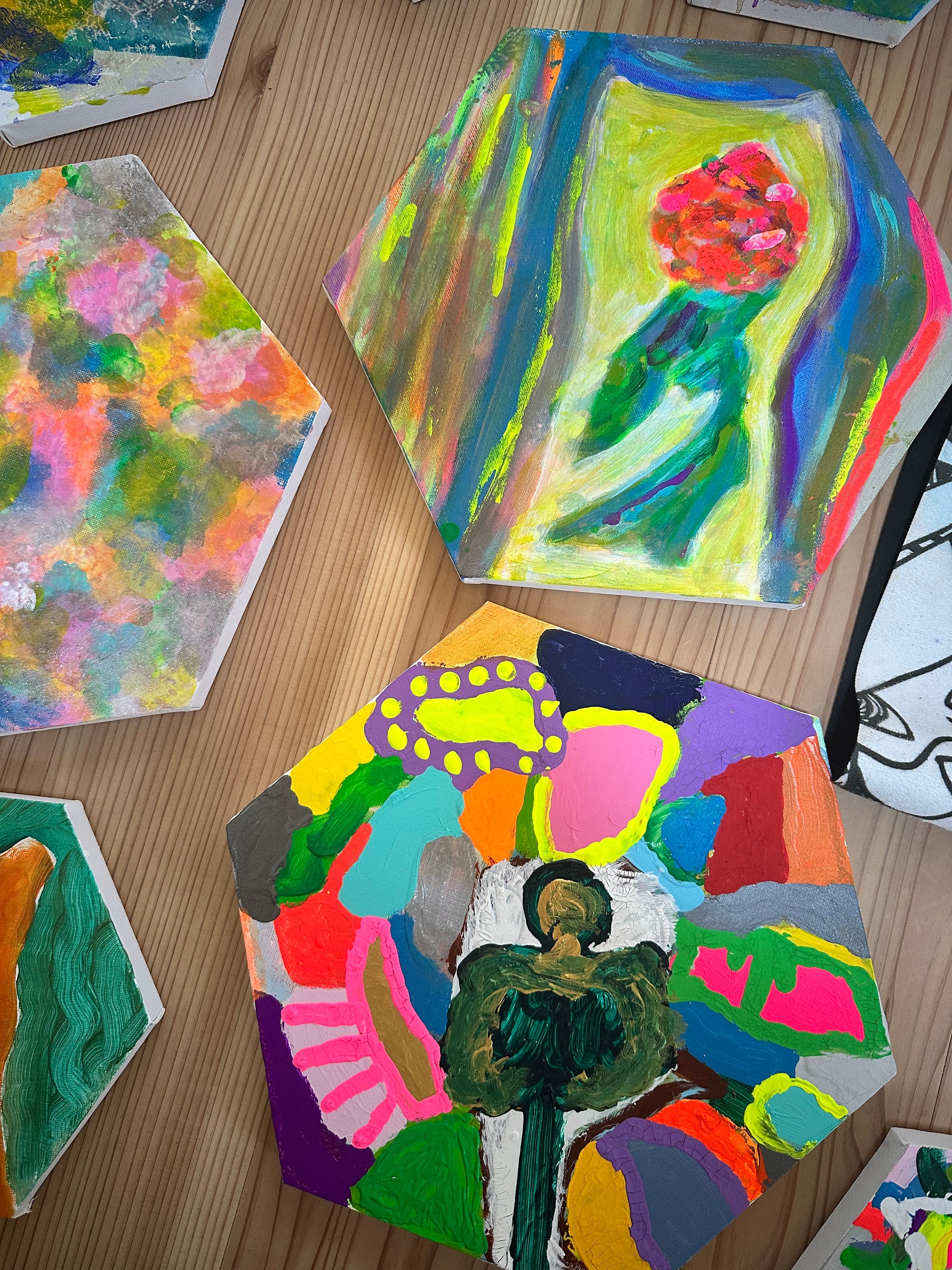 自分と絵、色、絵の具の感触、身体の動き、のような内に篭って集中する瞬間を行ったり来たりしながら進んでいく感覚がものすごく新鮮でした。