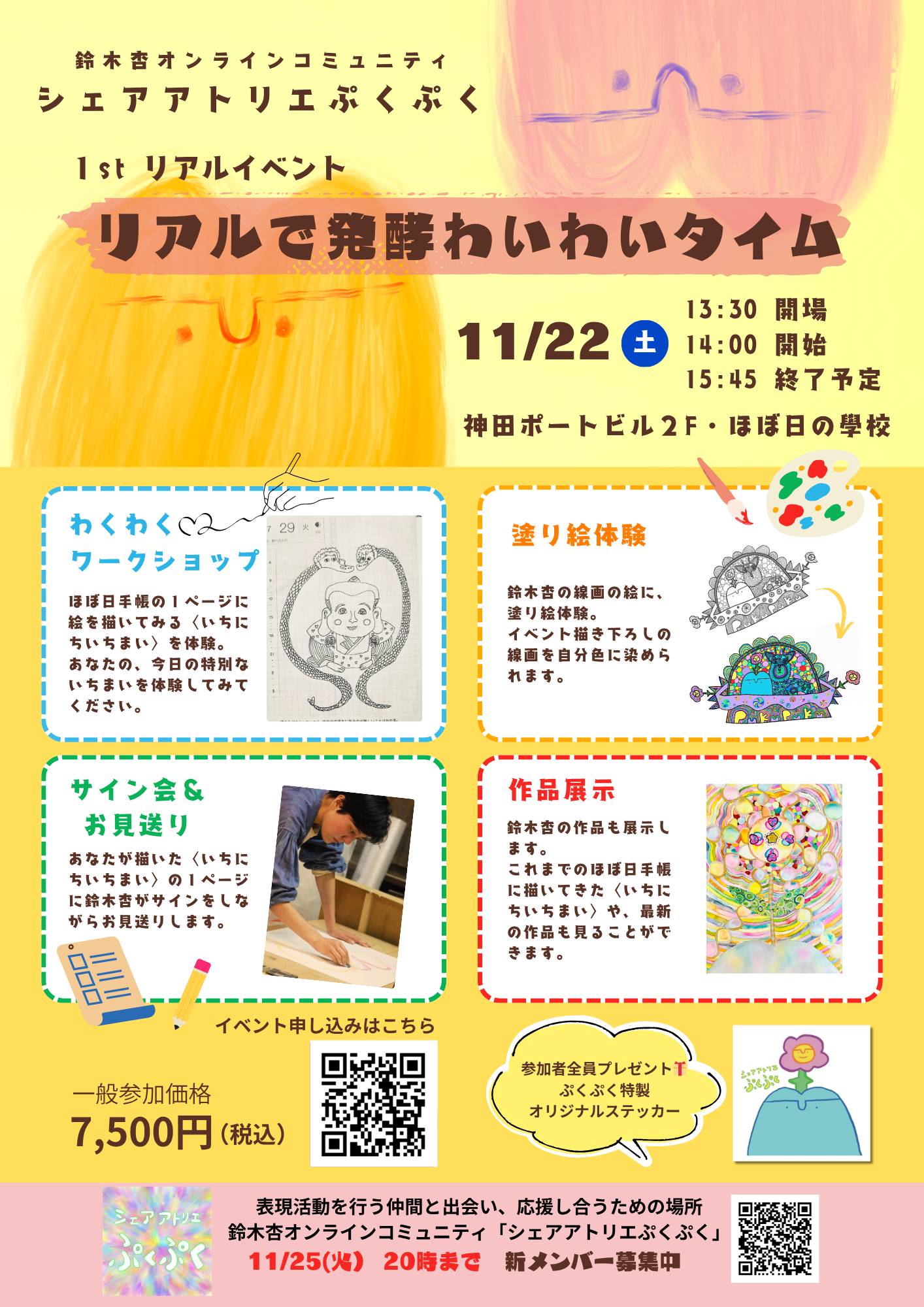 こちらのイベントページは、【鈴木杏オンラインコミュニティ】シェアアトリエぷくぷく 1stリアルイベント一般参加用ページです🖍️